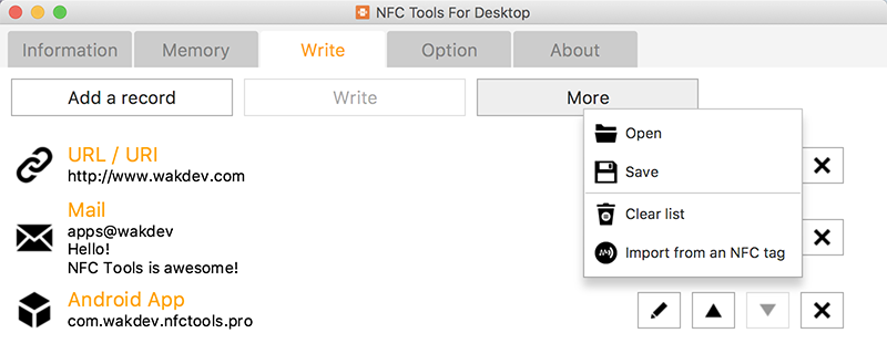 Save / load your record list and import from an existing NFC tag