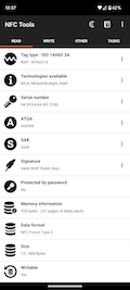 Passing your device near an NFC chip on the “Read” tab allows you to see data such as: