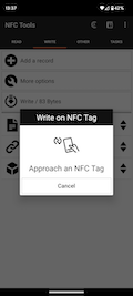 NFC Tools is an app which allows you to read, write and program tasks on your NFC tags and other compatible NFC chips.