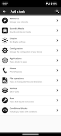 The tasks allowing you to automate your phone are under the "Tasks" tab and are categorised.