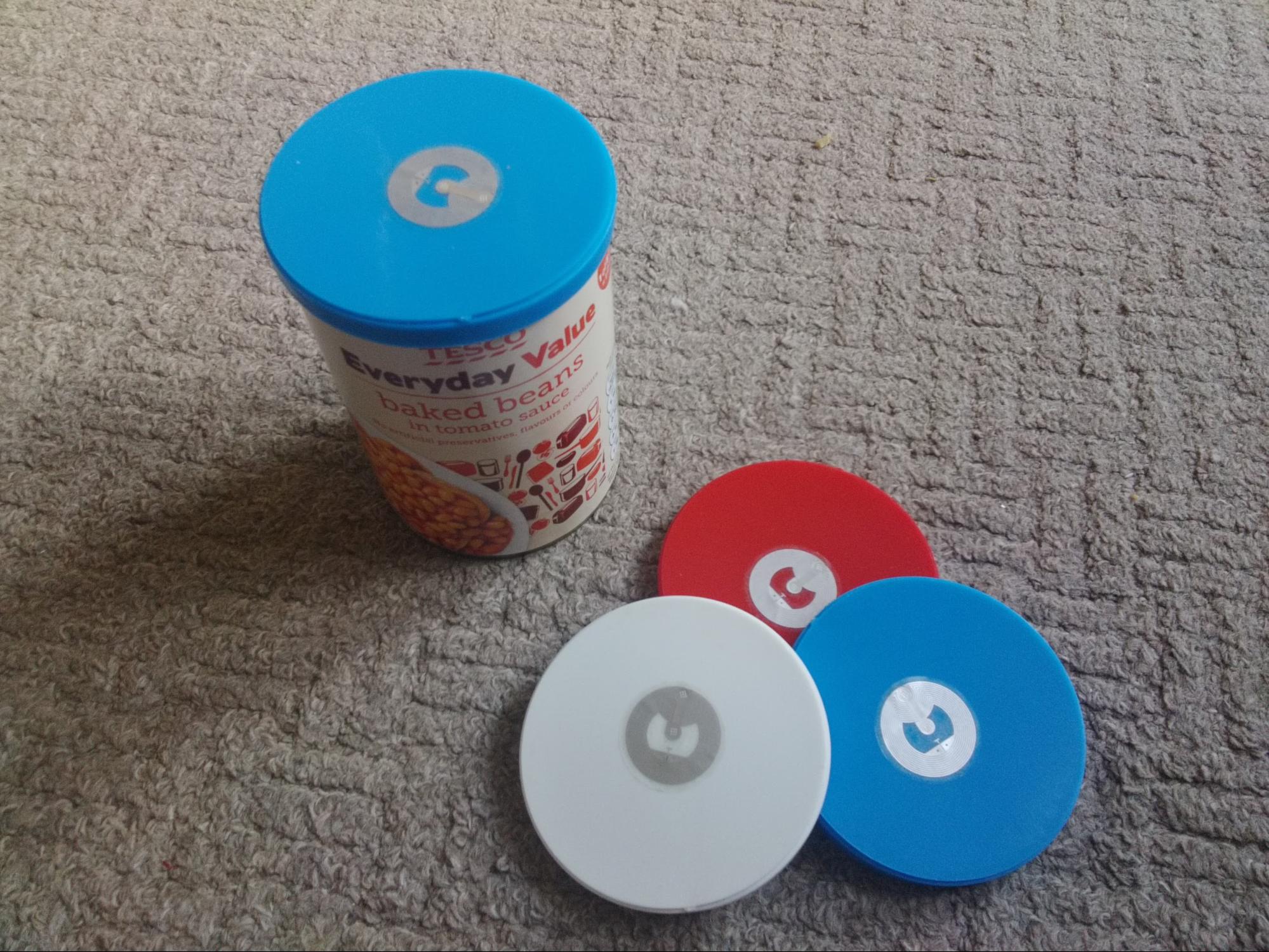 For example I paired the Sticker NFC tags with Plastic Can Lids to create audible labels.