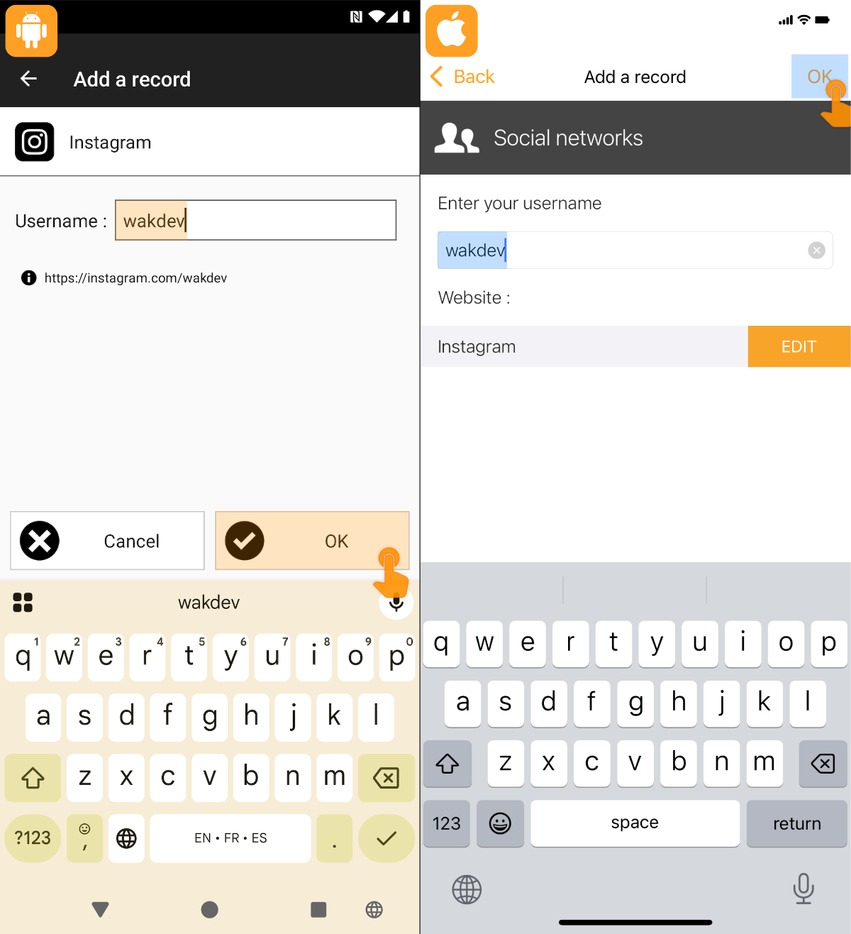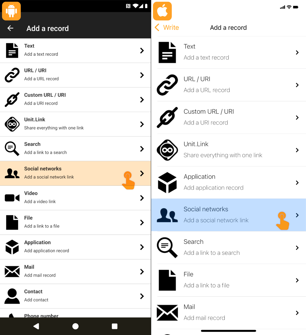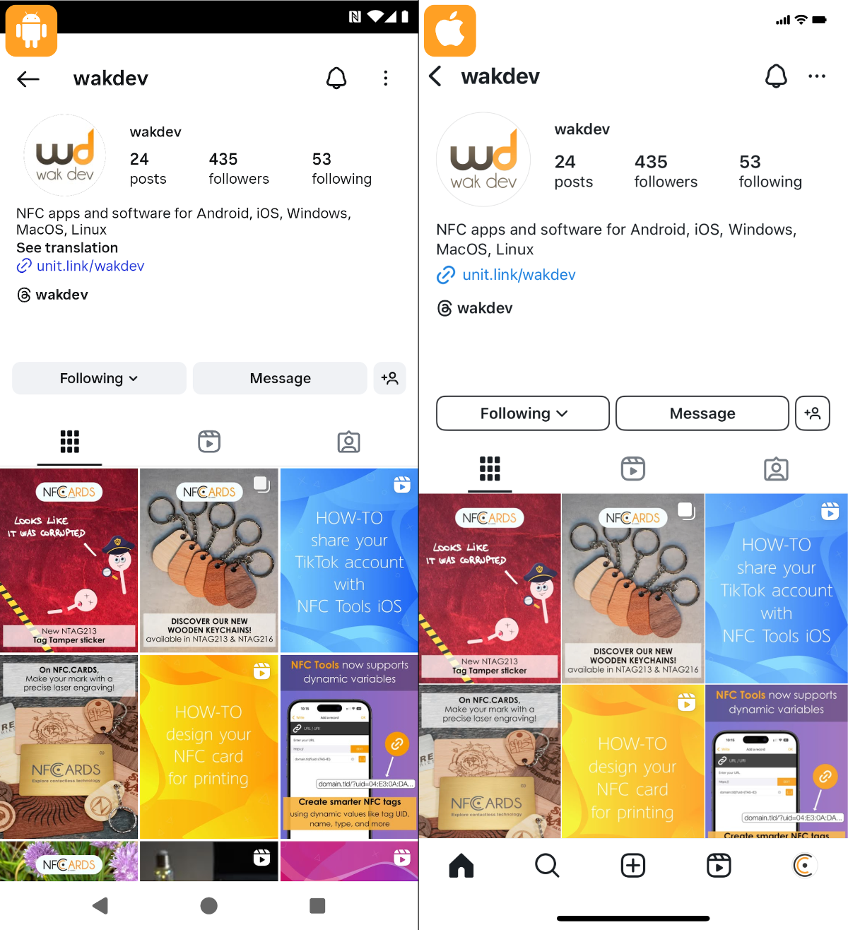7 - Go to the Home screen to scan your NFC chip: your profile address will appear in your social network application.