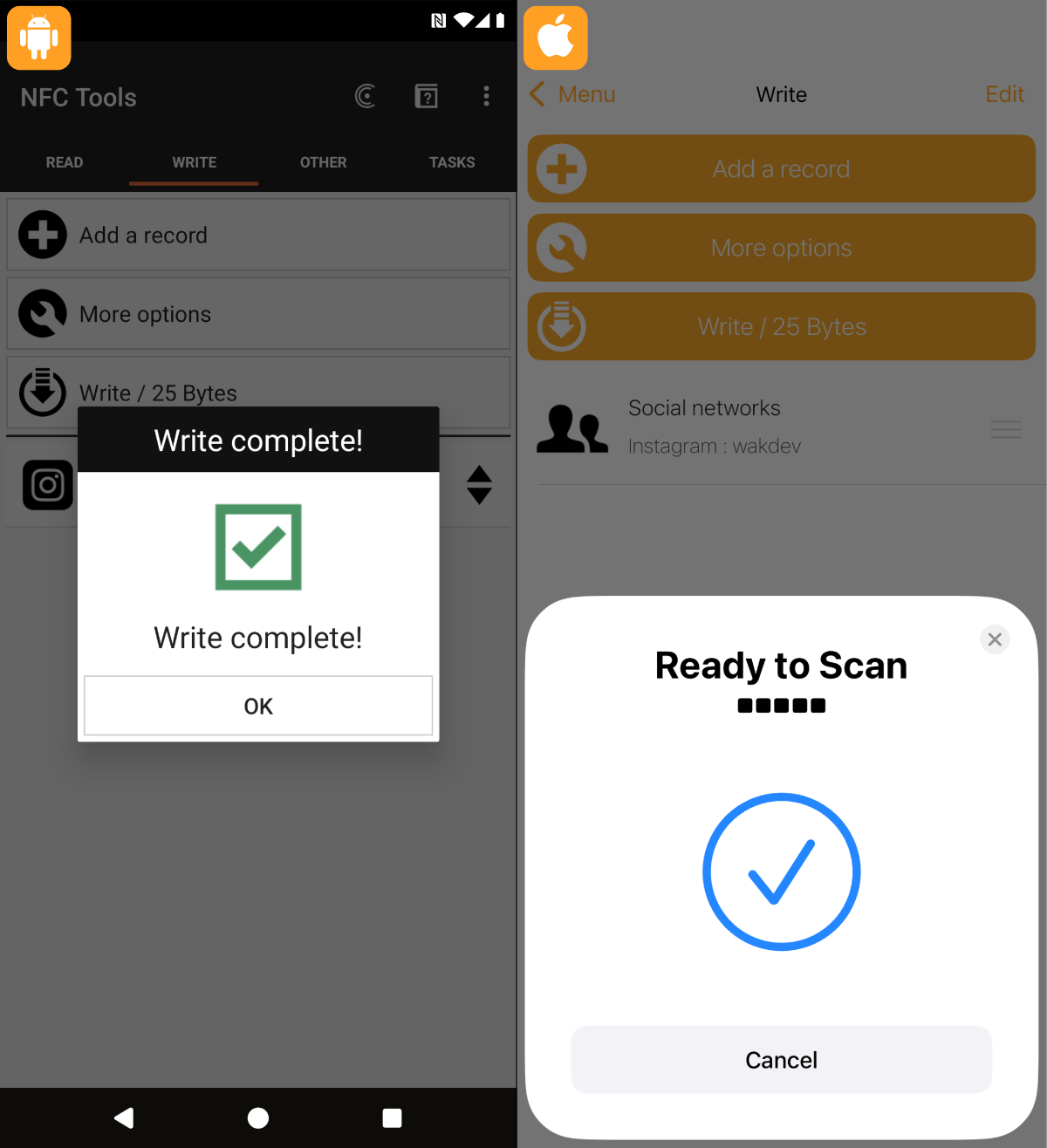 6 - Bring your NFC chip close to your smartphone and wait for the writing to be complete.