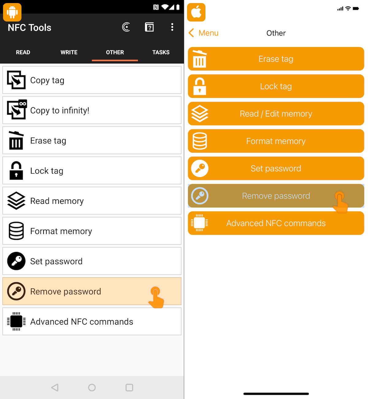 Your NFC chip is now no longer protected by a password.