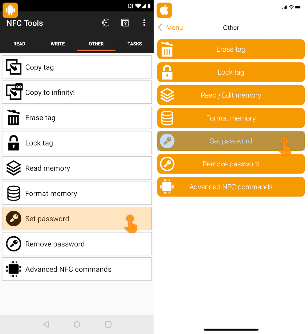 1 - Go to “Other” then click on “Set password“.