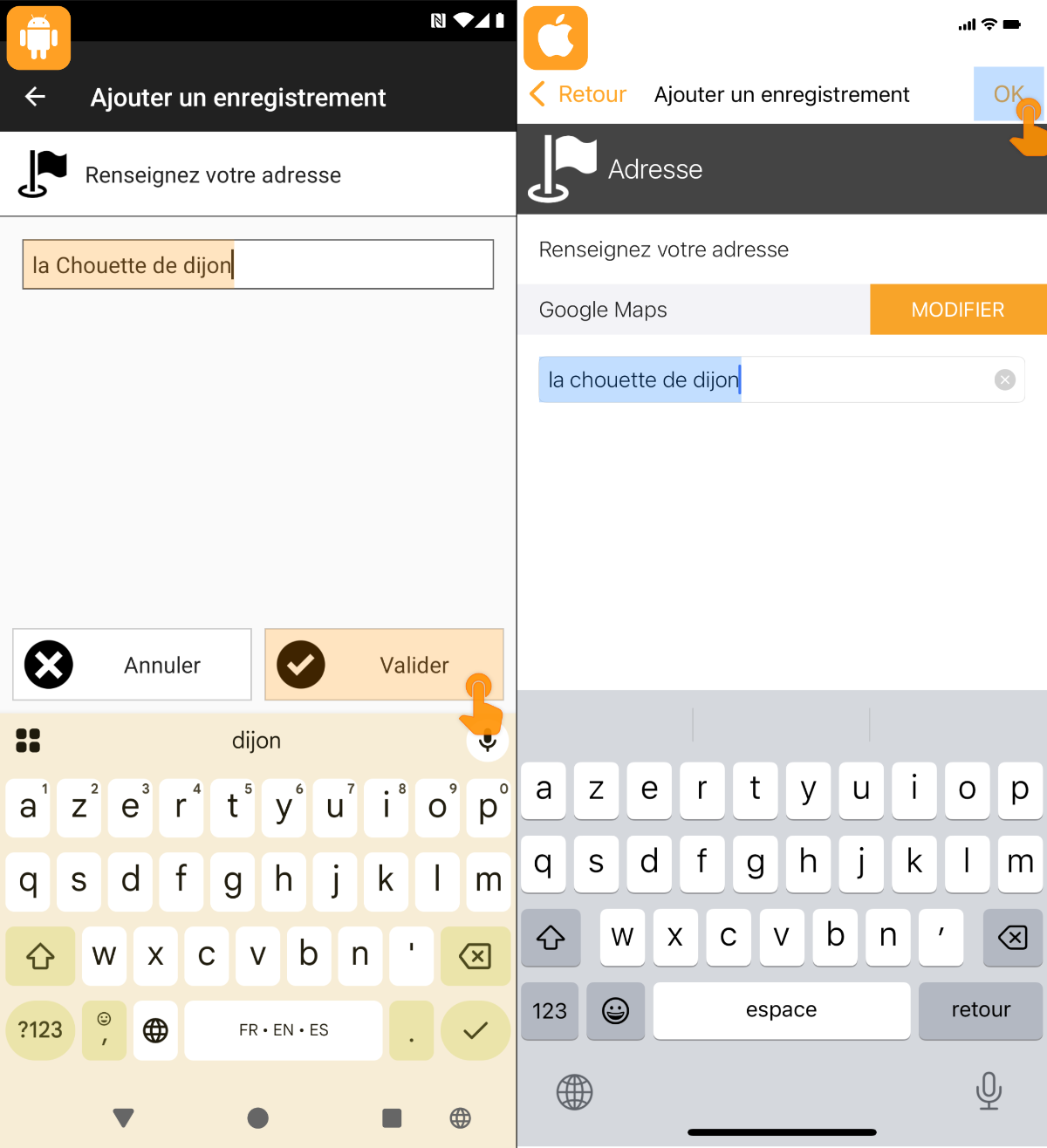 3 - Entrez votre adresse ou point d’intérêt puis cliquez sur "Valider"