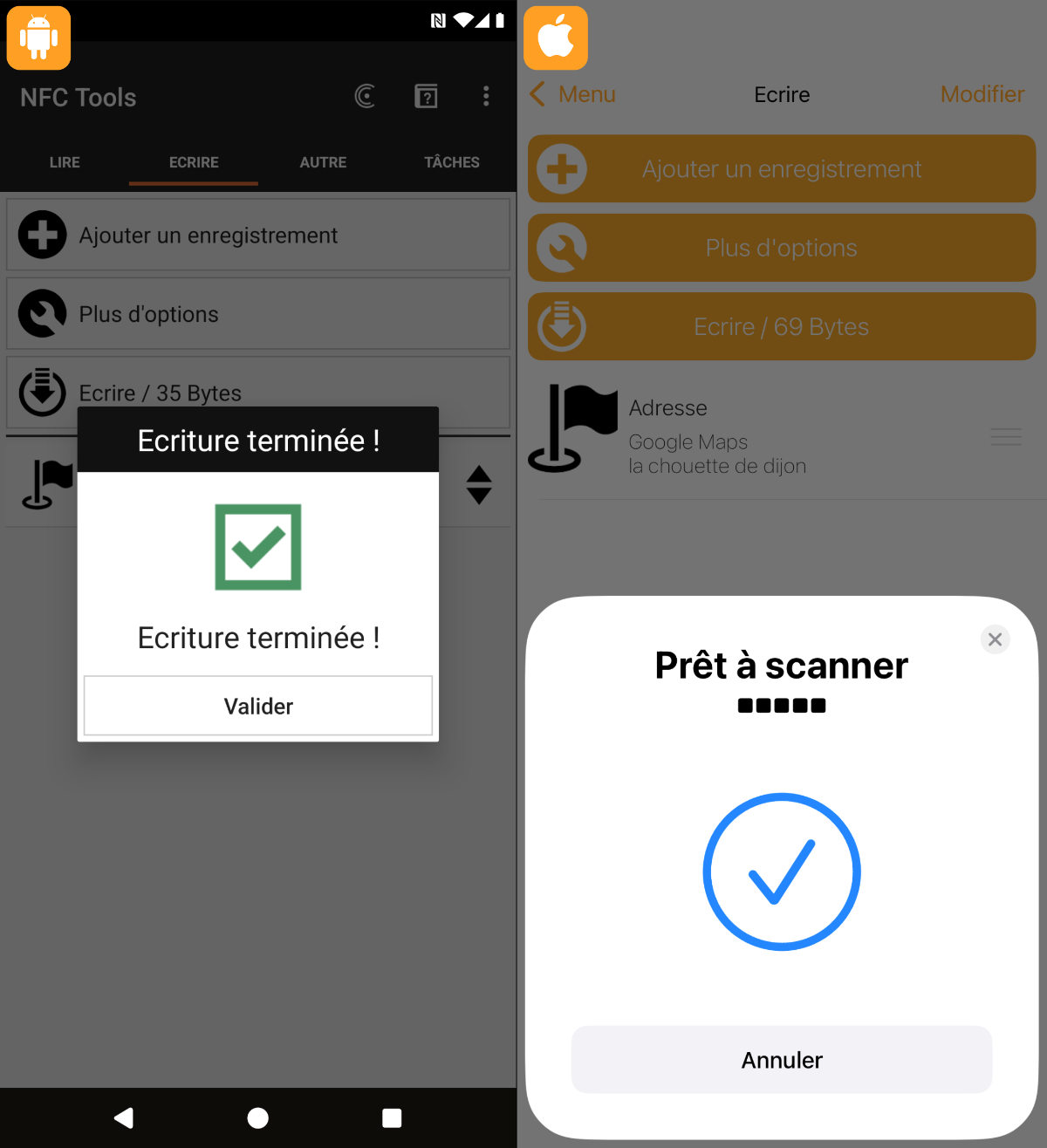 5- Approchez votre puce NFC près de votre smartphone et attendez que l’écriture soit terminée.