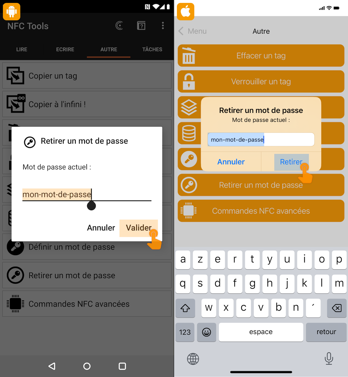 2 - Entrez le mot de passe inscrit dans votre puce NFC puis cliquez sur “Valider”.